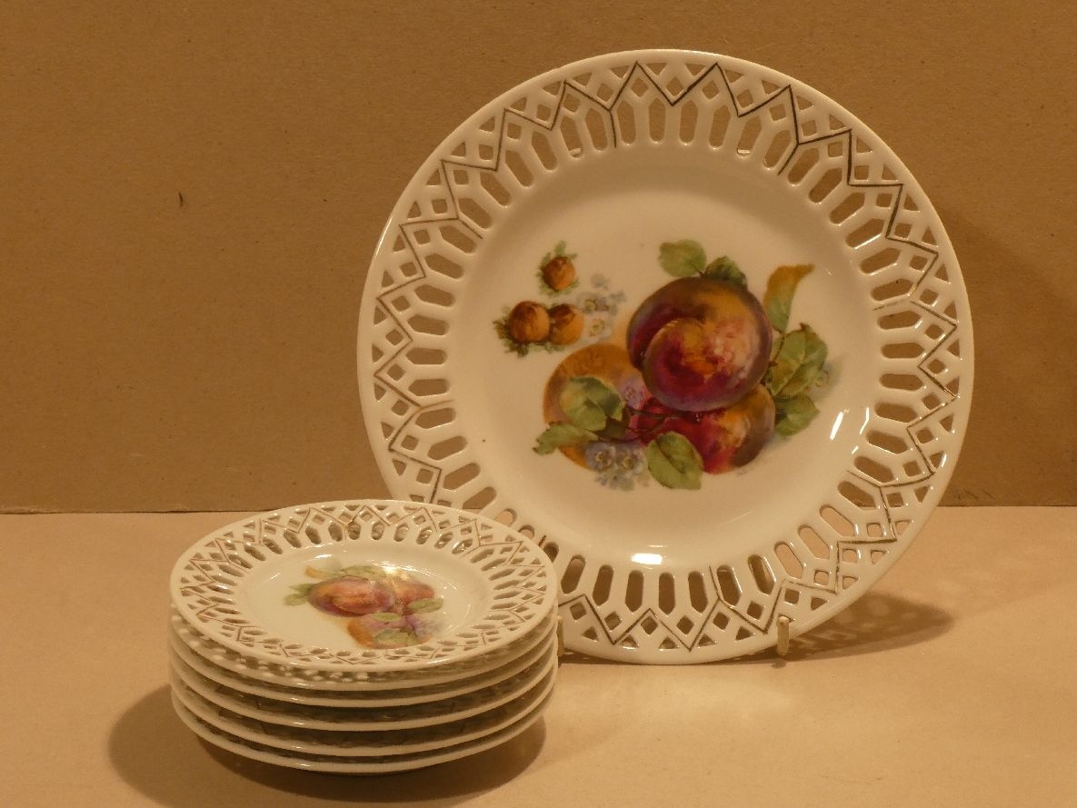 6 + 1, porcelán prolamovaný, značeno Victoria Czecho - Slovakia, průměr talíře 22 cm, průměr talířků 12,5 cm