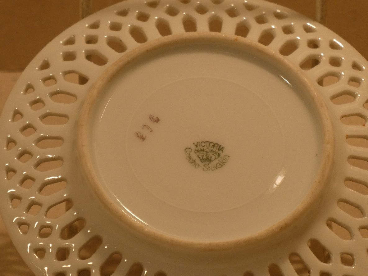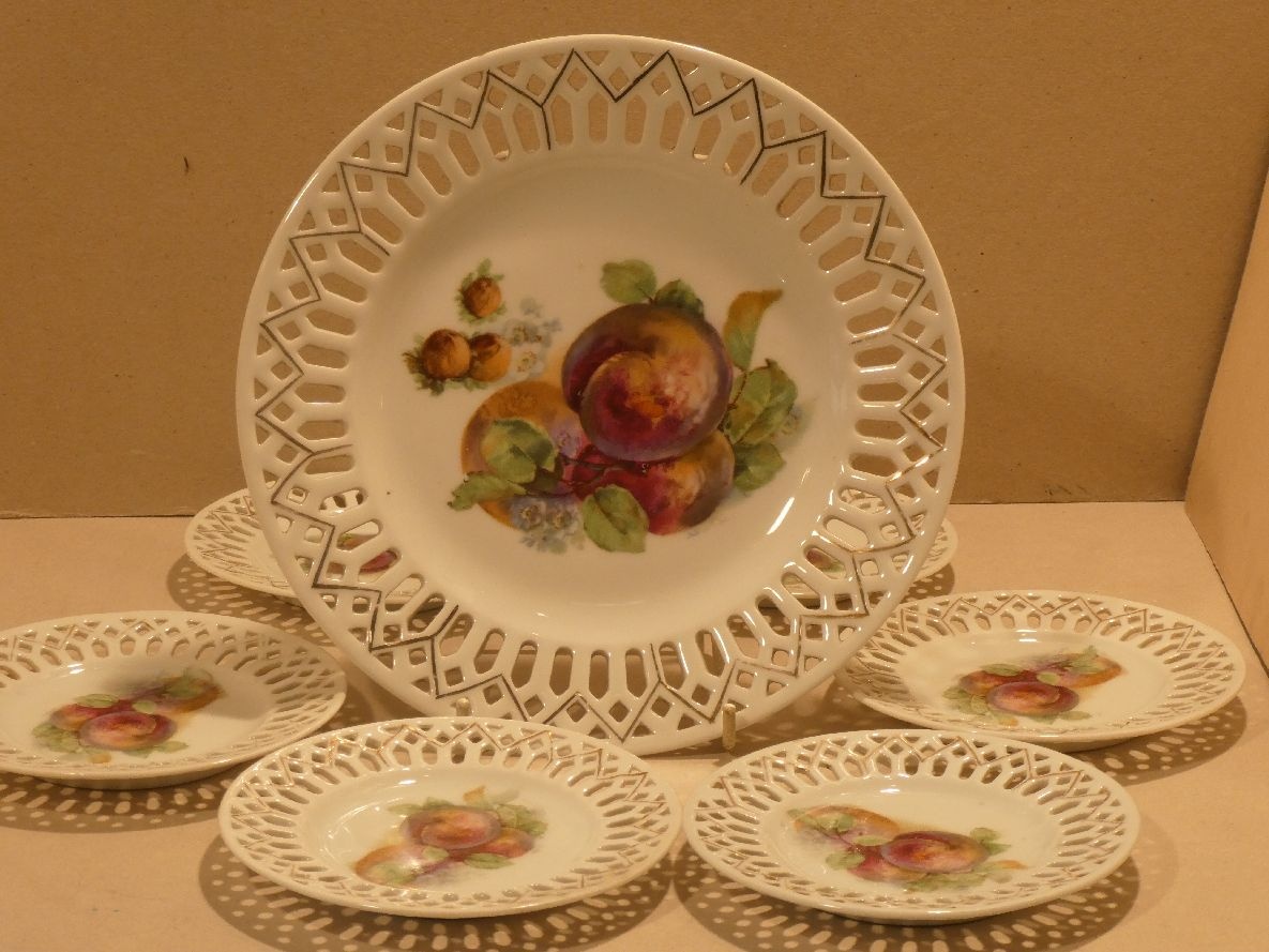 6 + 1, porcelán prolamovaný, značeno Victoria Czecho - Slovakia, průměr talíře 22 cm, průměr talířků 12,5 cm